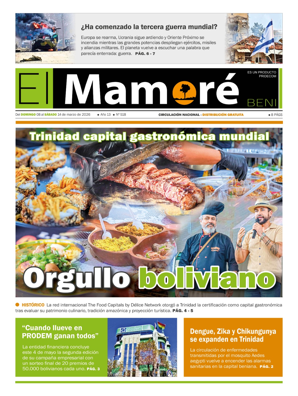 PRIDECOM SRL le presenta la edición impresa del semanario EL MAMORÉ, de distribución gratuita. reclame su ejemplar en las calles y puntos de distribución de Trinidad. Orgullo boliviano, Trinidad capital gastronómica mundial HISTÓRICO La red internacional The Food...